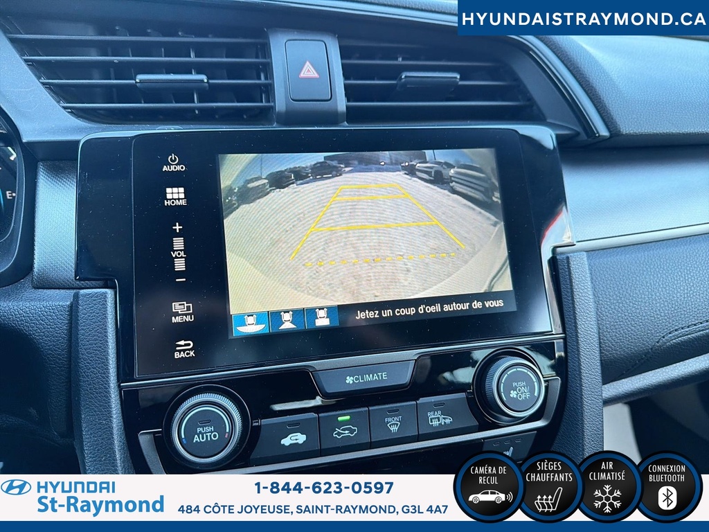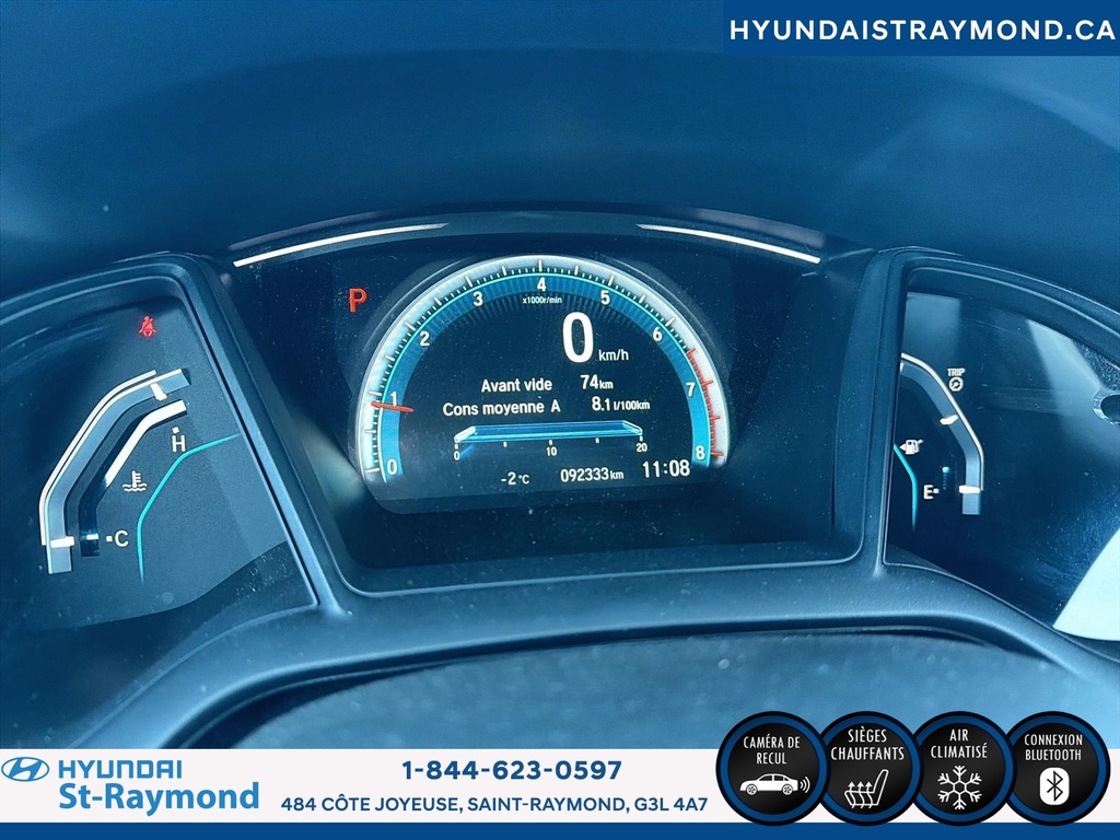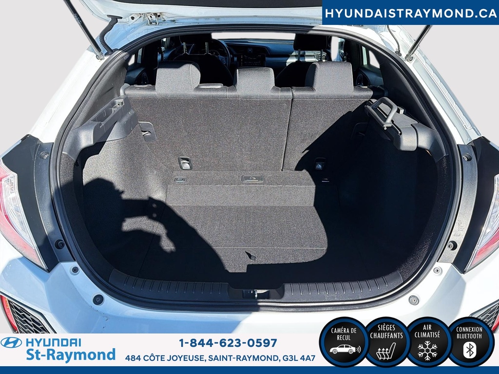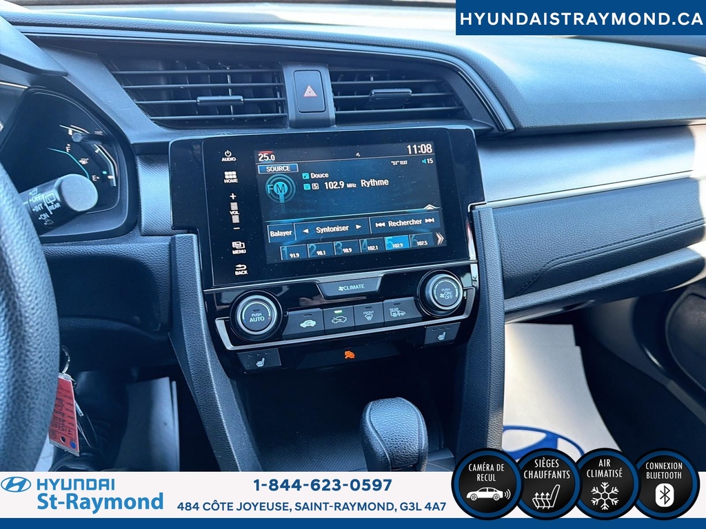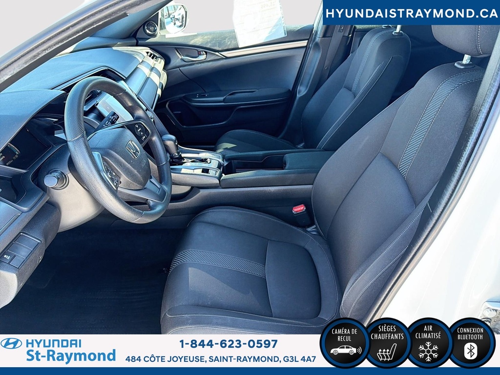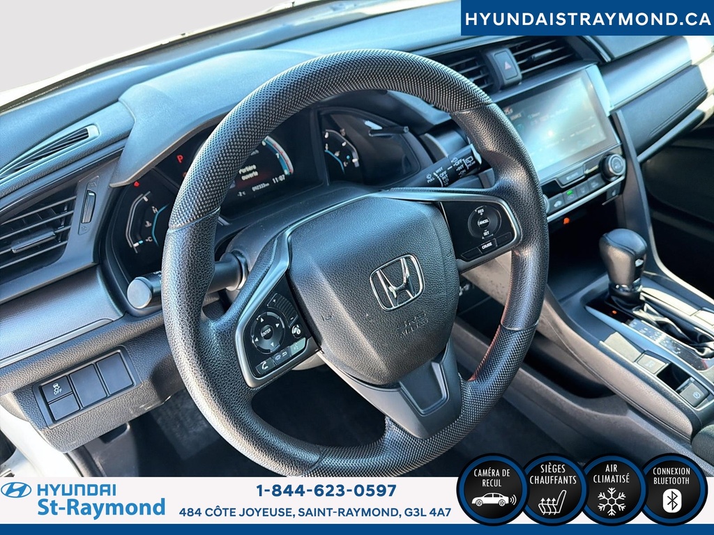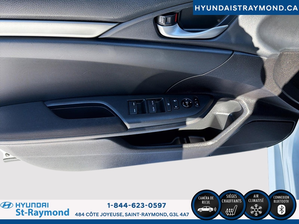 Le Honda Civic LX CVT 5 portes 2017 usagé offert chez Hyundai St-Raymond à St-Raymond est un choix logique pour un conducteur qui veut un véhicule simple, bien équipé et agréable au quotidien. Celui-ci affiche 92,231 km, une carrosserie blanche, un habitacle noir, 4 portes, et une motorisation essence 1,5 L avec transmission automatique à variation continue. CARACTÉRISTIQUES DE SÉCURITÉ AVANCÉES »» Système de freinage antiblocage (ABS) »» Contrôle de stabilité pour meilleure tenue de route »» Coussins gonflables latéraux aux places avant »» Coussins gonflables latéraux de tête PERFORMANCE ET EFFICACITÉ »» Moteur essence 1,5 L »» Transmission à variation continue (TVC) automatique »» Traction avant pour conduite stable »» Direction assistée pour manoeuvres faciles CONFORT »» Sièges avant chauffants pour l'hiver québécois »» Climatisation avant avec contrôle automatique température »» Vitres électriques pour les 4 portes »» Volant réglable pour meilleure position de conduite TECHNOLOGIE ET CONNECTIVITÉ »» Intégration Bluetooth pour appels mains libres »» Commandes audio au volant, accès rapide »» Caméra de recul pour stationnement plus simple »» Phares automatiques pour éclairage sans souci ESPACE DE CHARGEMENT »» Accès au coffre arrière depuis l'habitacle »» Couvre-bagage pour dissimuler les effets »» Coffre arrière pratique pour l'épicerie »» Pneu de secours inclus pour imprévus RÉCOMPENSES ET RECONNAISSANCES APPRÉCIÉ DES AUTRES PROPRIÉTAIRES »» Conduite facile en ville et sur route »» Visibilité et commandes simples à comprendre »» Chauffage des sièges avant très apprécié »» Bluetooth pratique pour les appels quotidiens GARANTIE Garantie de bon fonctionnement C - 1 mois ou 1,700 km Ce Honda Civic LX CVT 5 portes 2017 mise sur des équipements utiles et concrets: caméra de recul, sièges avant chauffants, rétroviseurs chauffants et électriques, contrôle de stabilité, ABS et plusieurs coussins gonflables. Il ajoute aussi des détails pratiques comme le dégivreur de vitre arrière, le verrouillage automatique des portes et les serrures de sécurité enfant, utiles pour la vie de tous les jours. Avec son aileron arrière, ses pneus haute performance, et une configuration traction avant, ce véhicule conserve une conduite prévisible et rassurante. La transmission TVC aide à garder une conduite douce, surtout en circulation, et les phares automatiques simplifient les déplacements quand la luminosité change. Le tout est présenté dans une formule 4 portes polyvalente, prête à servir autant pour les trajets de travail que les sorties de fin de semaine. Le NIV de ce Honda Civic LX CVT 5 portes 2017 est le SHHFK7H28HU304482.