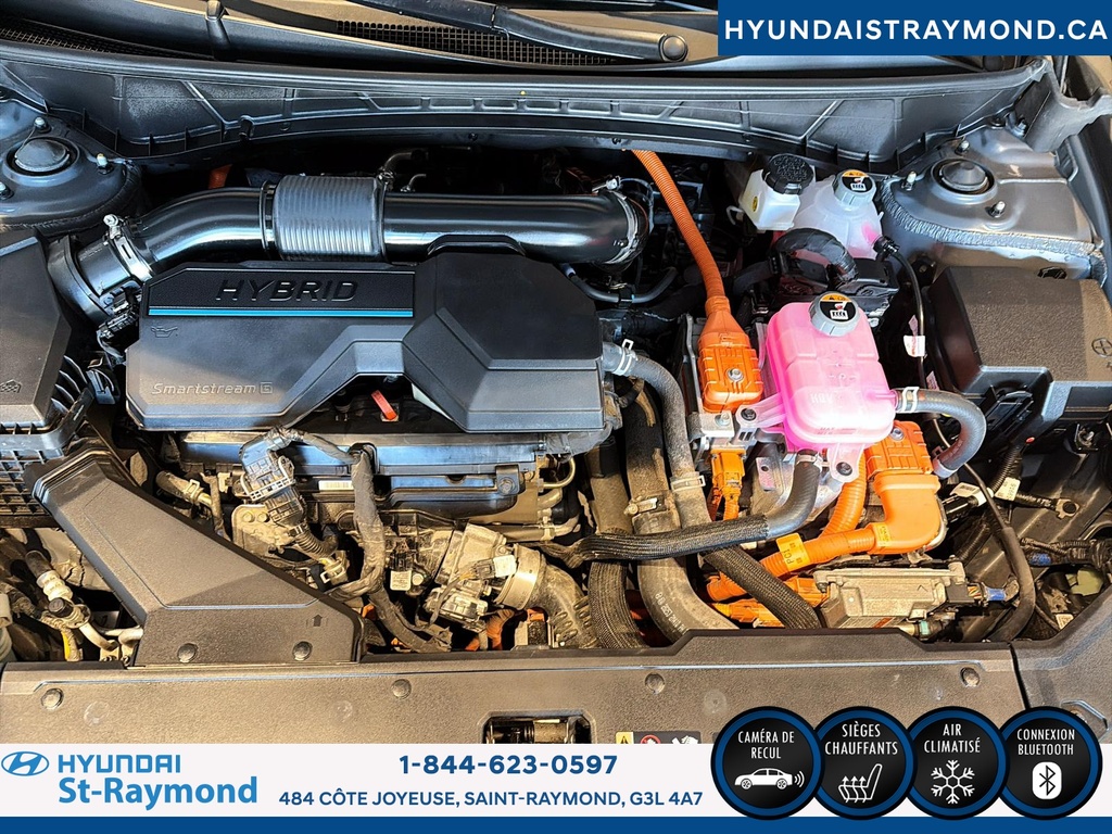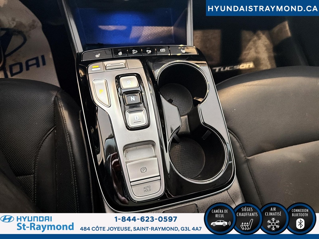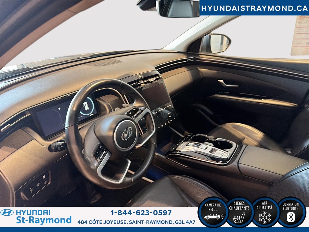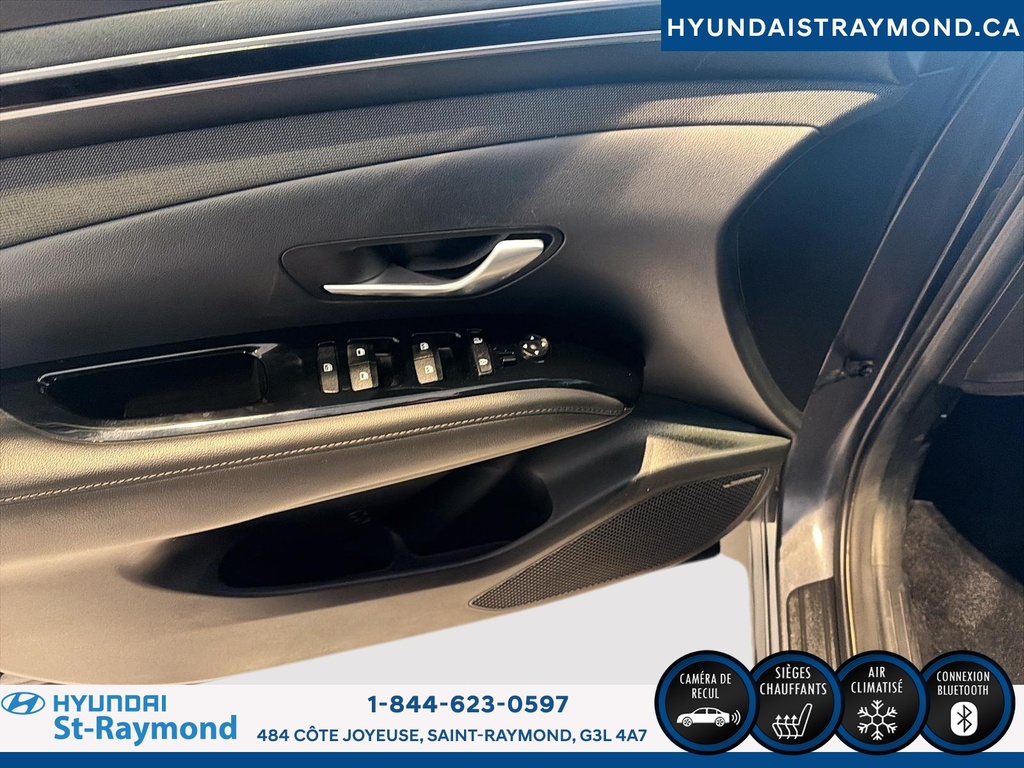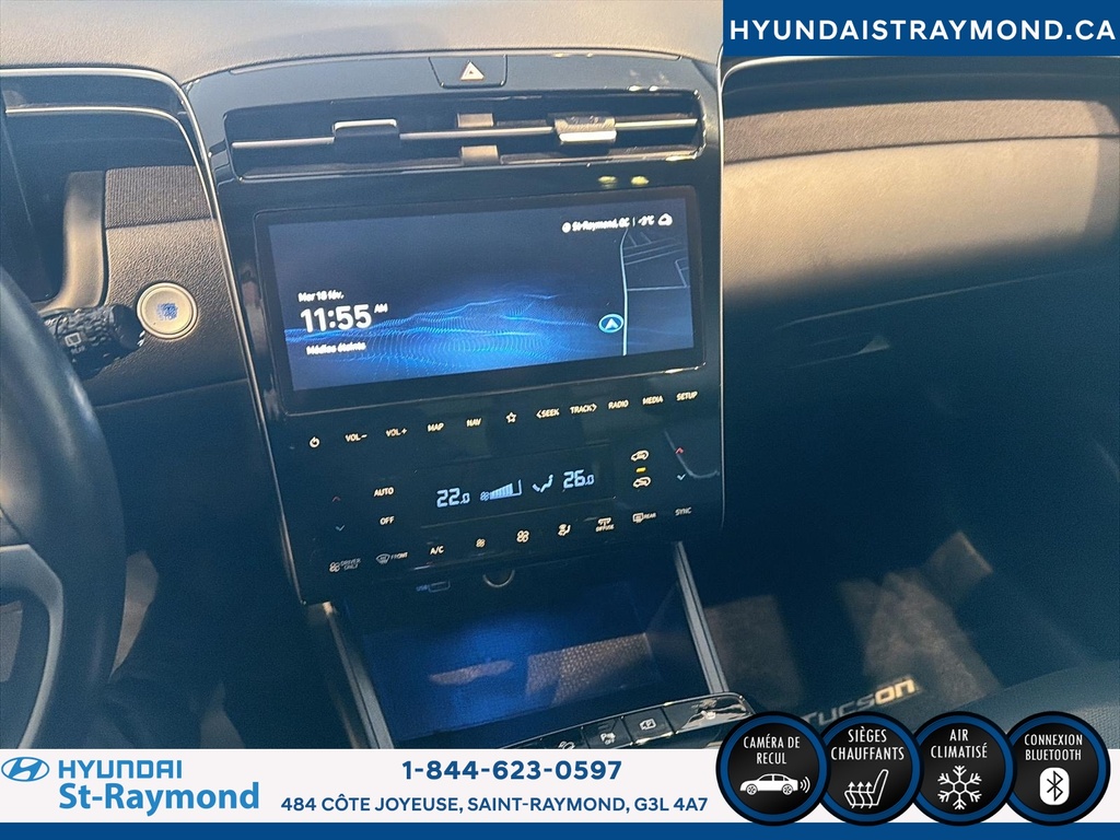 // UN SEUL PROPRIÉTAIRE // Le Hyundai Tucson 2023 version Luxe hybride !!! offert chez Hyundai St-Raymond à St-Raymond est un VUS hybride bien équipé, avec 57 768 km. Il se démarque par son moteur 1,6 L hybride, sa transmission automatique, sa finition extérieure grise et son habitacle noir. Un choix logique pour rouler confortablement au quotidien. CARACTÉRISTIQUES DU VÉHICULE HYBRIDE »» Moteur 1,6 L hybride »» Transmission automatique à double embrayage »» Boîte automatique à 6 vitesses »» Gestion hybride pour réduire la consommation CARACTÉRISTIQUES DE SÉCURITÉ AVANCÉES »» Avertissement de sortie de voie »» Surveillance des angles morts »» Caméra de recul »» Coussins gonflables latéraux et rideaux PERFORMANCE ET EFFICACITÉ »» Transmission automatique pour conduite sans effort »» Direction assistée pour manoeuvres plus faciles »» Contrôle de stabilité pour meilleure tenue de route »» Système de freinage antiblocage (ABS) CONFORT »» Sièges avant chauffants »» Sièges arrière chauffants »» Climatisation avant à deux zones »» Siège conducteur à réglage électrique lombaire TECHNOLOGIE ET CONNECTIVITÉ »» Intégration Bluetooth pour appels et audio »» Système de navigation (GPS) intégré »» Commandes audio au volant »» Radio satellite et radio HD ESPACE DE CHARGEMENT »» Hayon électrique pour accès simplifié »» Accès au coffre arrière »» Ouverture à distance du coffre »» Banquette arrière pour objets longs APPRÉCIÉ DES AUTRES PROPRIÉTAIRES »» Confort en hiver grâce aux sièges chauffants »» Sentiment de sécurité avec angles morts »» Facilité de stationnement avec caméra recul »» Agrément au quotidien du groupe hybride GARANTIE Garantie originale du manufacturier: 20 Mai 2028 ou 100000 Km. Garantie de bon fonctionnement A - 6 mois ou 10,000 km Au quotidien, ce Hyundai Tucson 2023 version Luxe hybride !!! mise sur des commodités utiles: démarrage par bouton-poussoir, démarreur à distance, vitres électriques, rétroviseurs électriques chauffants avec clignotants, phares automatiques à DEL, dégivreur de vitre arrière, vitres teintées et verrouillage automatique des portes. Le toit ouvrant panoramique en verre ajoute une belle luminosité à l'habitacle. Le NIV de ce Hyundai Tucson Luxe hybride !!! 2023 est le KM8JCCA1XPU119306 .