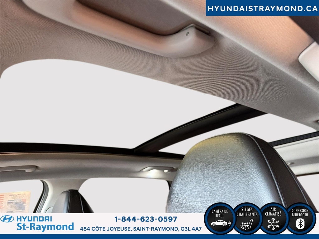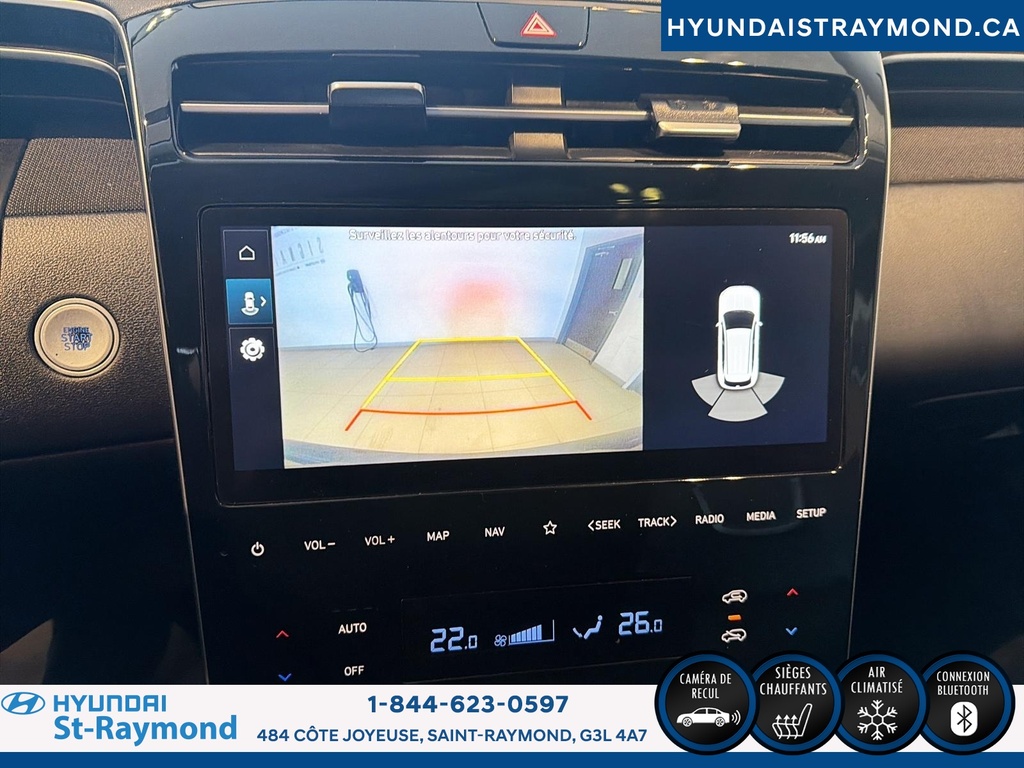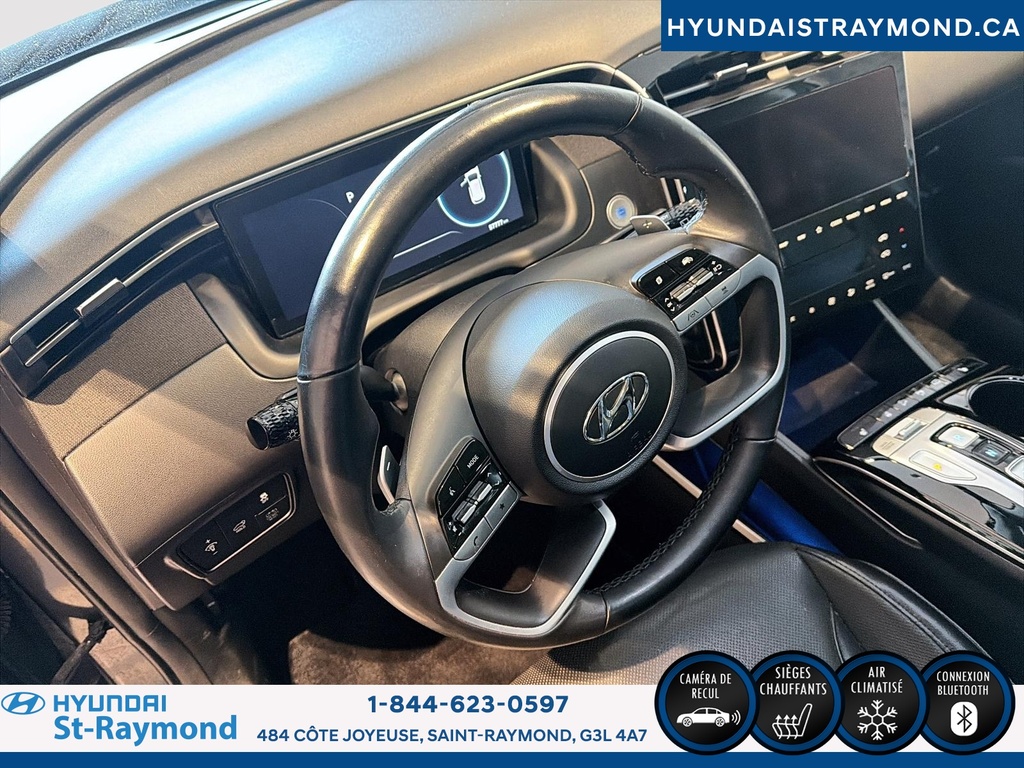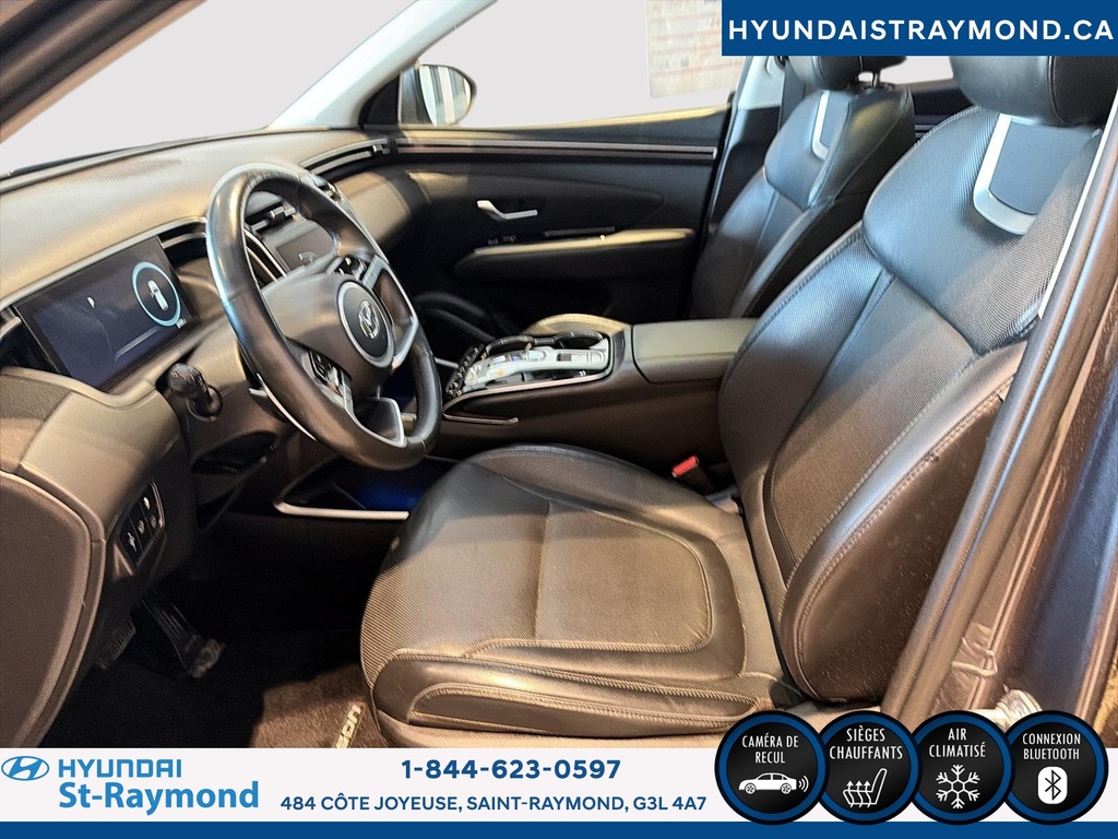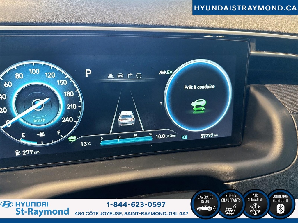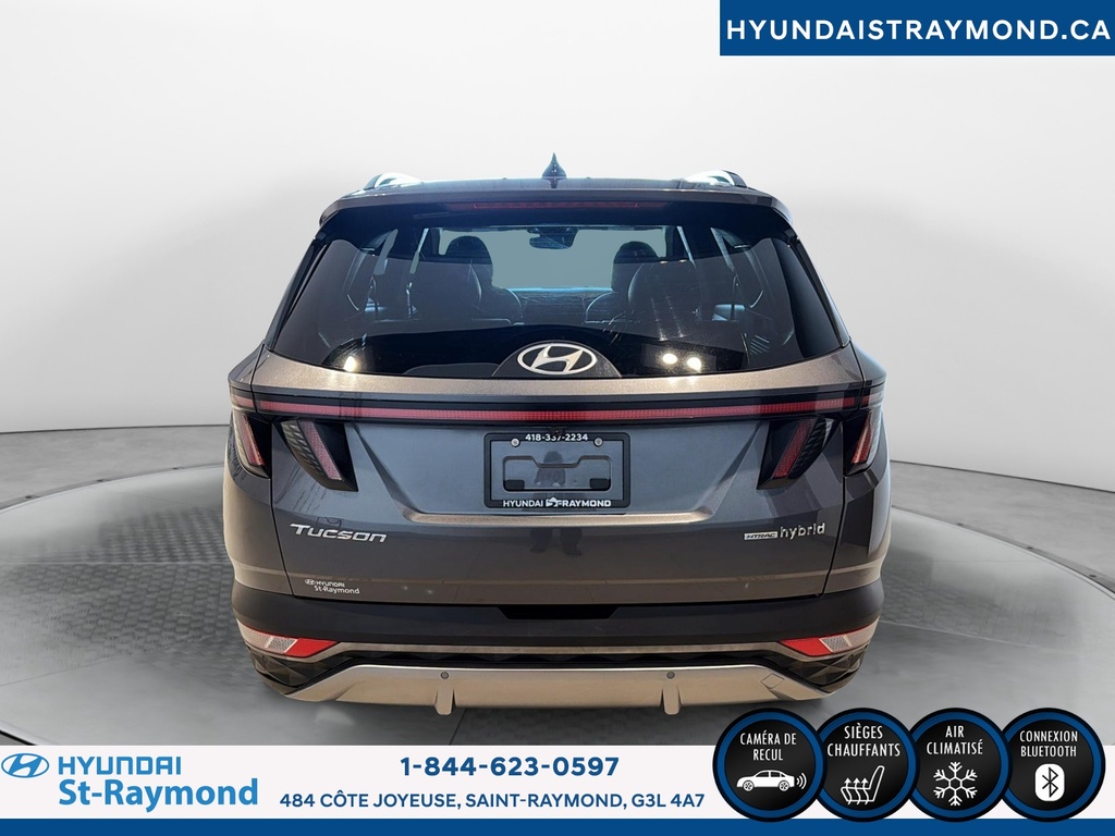 // UN SEUL PROPRIÉTAIRE // Le Hyundai Tucson 2023 version Luxe hybride !!! offert chez Hyundai St-Raymond à St-Raymond est un VUS hybride bien équipé, avec 57 768 km. Il se démarque par son moteur 1,6 L hybride, sa transmission automatique, sa finition extérieure grise et son habitacle noir. Un choix logique pour rouler confortablement au quotidien. CARACTÉRISTIQUES DU VÉHICULE HYBRIDE »» Moteur 1,6 L hybride »» Transmission automatique à double embrayage »» Boîte automatique à 6 vitesses »» Gestion hybride pour réduire la consommation CARACTÉRISTIQUES DE SÉCURITÉ AVANCÉES »» Avertissement de sortie de voie »» Surveillance des angles morts »» Caméra de recul »» Coussins gonflables latéraux et rideaux PERFORMANCE ET EFFICACITÉ »» Transmission automatique pour conduite sans effort »» Direction assistée pour manoeuvres plus faciles »» Contrôle de stabilité pour meilleure tenue de route »» Système de freinage antiblocage (ABS) CONFORT »» Sièges avant chauffants »» Sièges arrière chauffants »» Climatisation avant à deux zones »» Siège conducteur à réglage électrique lombaire TECHNOLOGIE ET CONNECTIVITÉ »» Intégration Bluetooth pour appels et audio »» Système de navigation (GPS) intégré »» Commandes audio au volant »» Radio satellite et radio HD ESPACE DE CHARGEMENT »» Hayon électrique pour accès simplifié »» Accès au coffre arrière »» Ouverture à distance du coffre »» Banquette arrière pour objets longs APPRÉCIÉ DES AUTRES PROPRIÉTAIRES »» Confort en hiver grâce aux sièges chauffants »» Sentiment de sécurité avec angles morts »» Facilité de stationnement avec caméra recul »» Agrément au quotidien du groupe hybride GARANTIE Garantie originale du manufacturier: 20 Mai 2028 ou 100000 Km. Garantie de bon fonctionnement A - 6 mois ou 10,000 km Au quotidien, ce Hyundai Tucson 2023 version Luxe hybride !!! mise sur des commodités utiles: démarrage par bouton-poussoir, démarreur à distance, vitres électriques, rétroviseurs électriques chauffants avec clignotants, phares automatiques à DEL, dégivreur de vitre arrière, vitres teintées et verrouillage automatique des portes. Le toit ouvrant panoramique en verre ajoute une belle luminosité à l'habitacle. Le NIV de ce Hyundai Tucson Luxe hybride !!! 2023 est le KM8JCCA1XPU119306 .